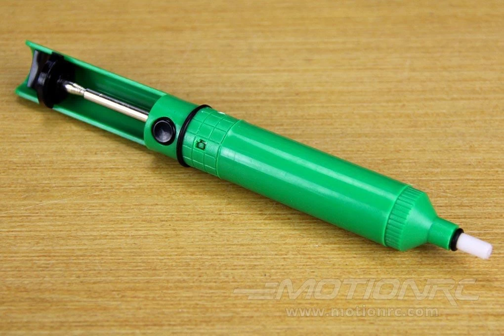 This Desoldering Pump is ideal for removing excess solder from a wire joint, and also for example restoring motor wire solder pads on ESC circuit boards closer to their original un-soldered condition.