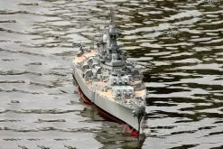 Bancroft’s Elite Series of warships presents the 1/200 scale Battleship USS Missouri! Display this museum piece on your mantle or astonish your RC boat club with this functional RTR (Ready to Run) RC battleship. Over 300 total parts and 100 man-hours of work is already completed for you. Delivered Ready to Run (RTR), the vessel can be sailing within minutes of arrival, using the included 2.4Ghz radio transmitter, 2s Li-Ion battery, and charger. Only four AA batteries, ballast and minimal assembly is required. Set sail in minutes!