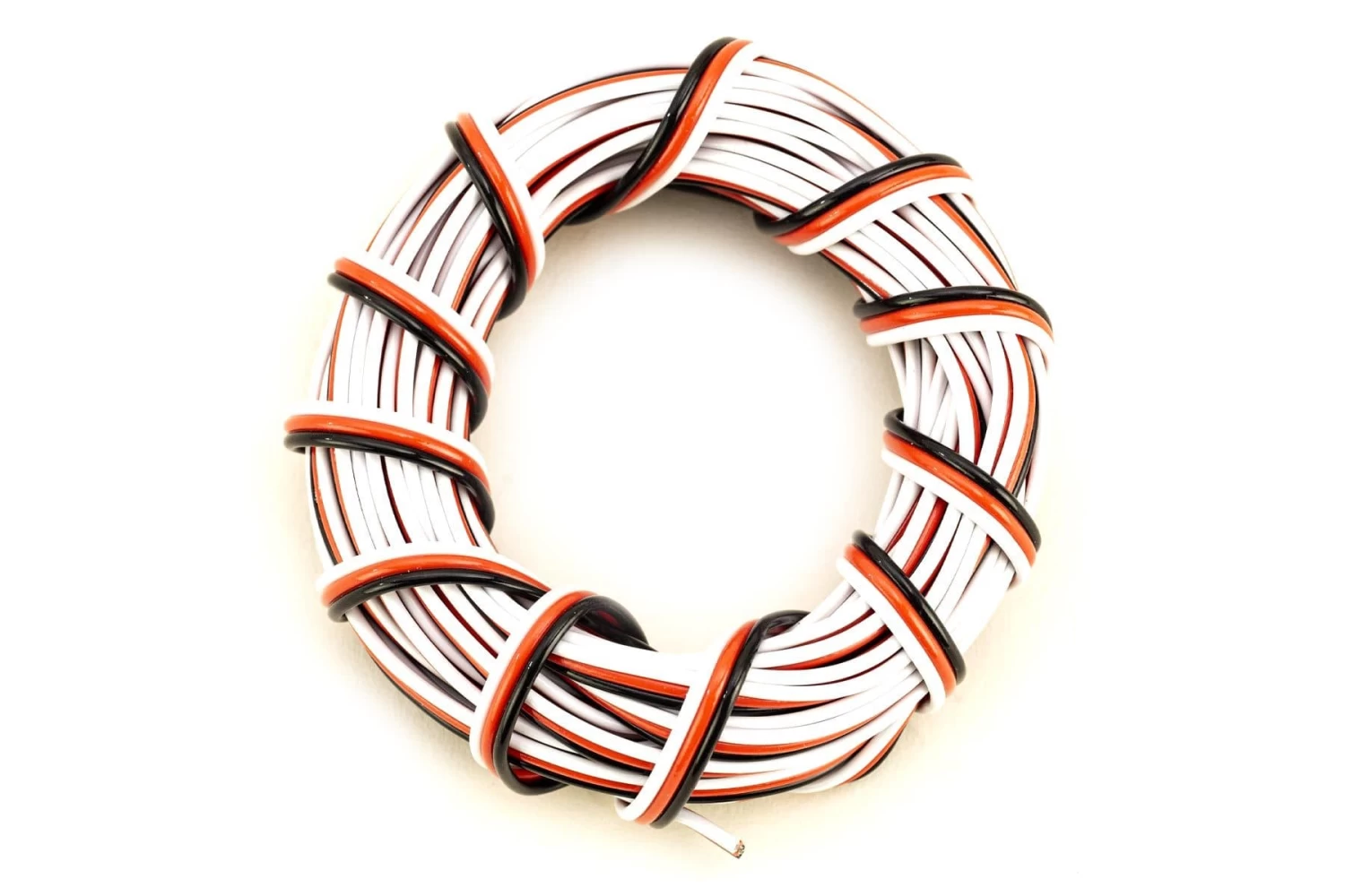 22 Gauge (AWG) Twisted Servo Wire – White/Red/Black (5 Meters) from BenchCraft – BCT5003-012