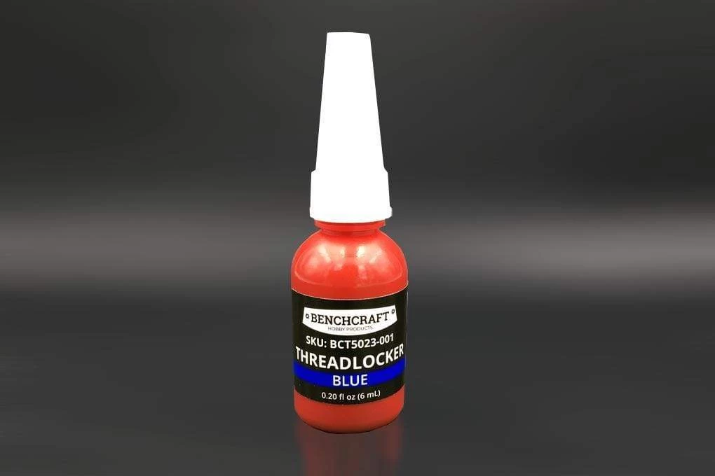 BenchCraft Hobby Products Blue Thread Locker is a premium quality metal to metal thread locker designed specifically for RC models and other precision equipment with small, metal parts. Use blue thread lock to lock grub screws, axle and drive nuts, engine mounting screws, or any screw or nut that keeps your RC airplane, boat, car, or helicopter from coming apart.Â