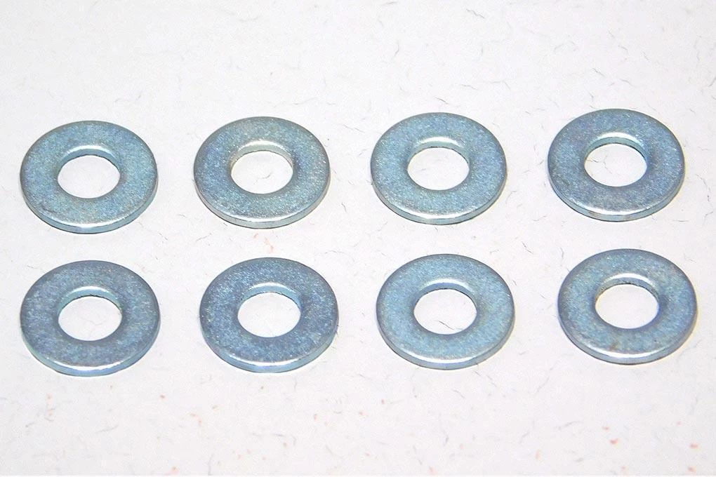 8 pack of Zinc-plated steel #4 flat washers for your model projects.