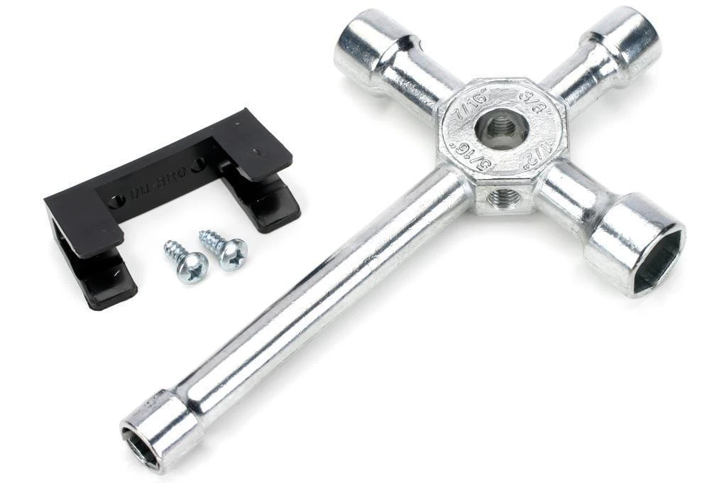 The Du-Bro 4-Way Socket Wrench offers modelers a quality socket wrench at an affordable price. Available in two sizes (Standard and XL) the wrench will accommodate both American and Metric sizes (5/16, 3/8, 7/16, 1/2, 8mm, 10mm, 11mm, 12mm). Also features 3 built in glo-plug holders and special retaining clip. Storage clip mounts securely to field box keeping 4-way wrench readily accessible. Comes complete with mounting screws for storage clip. 1 wrench and clip per package.