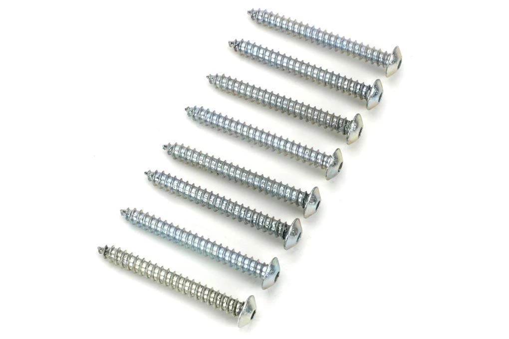 This design is by far the best way to mount servos, cowls, landing gear, etc. The wide/low profile head of the screw acts as a washer and they also have a socket head for easy, no slip installation. Bright Zinc plated with clear chromate.Â