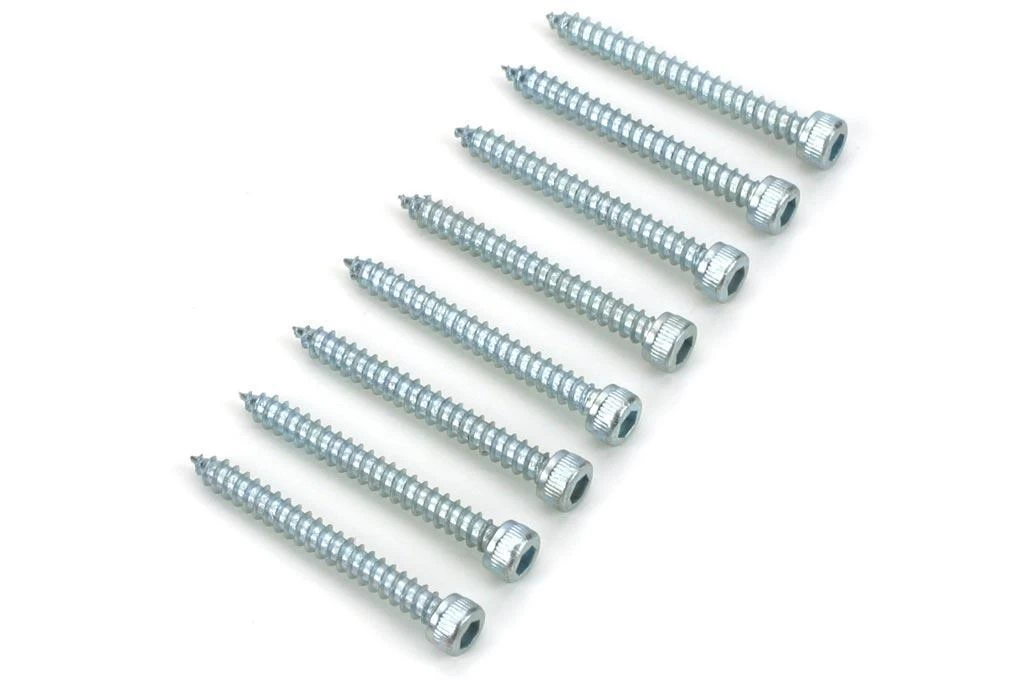 These zinc plated socket head sheet metal screws are fully threaded and have more applications than wood screws. The non-slip socket head makes hard to get at places easy! Perfect for mounting servos, landing gear straps, motor mounts, etc.