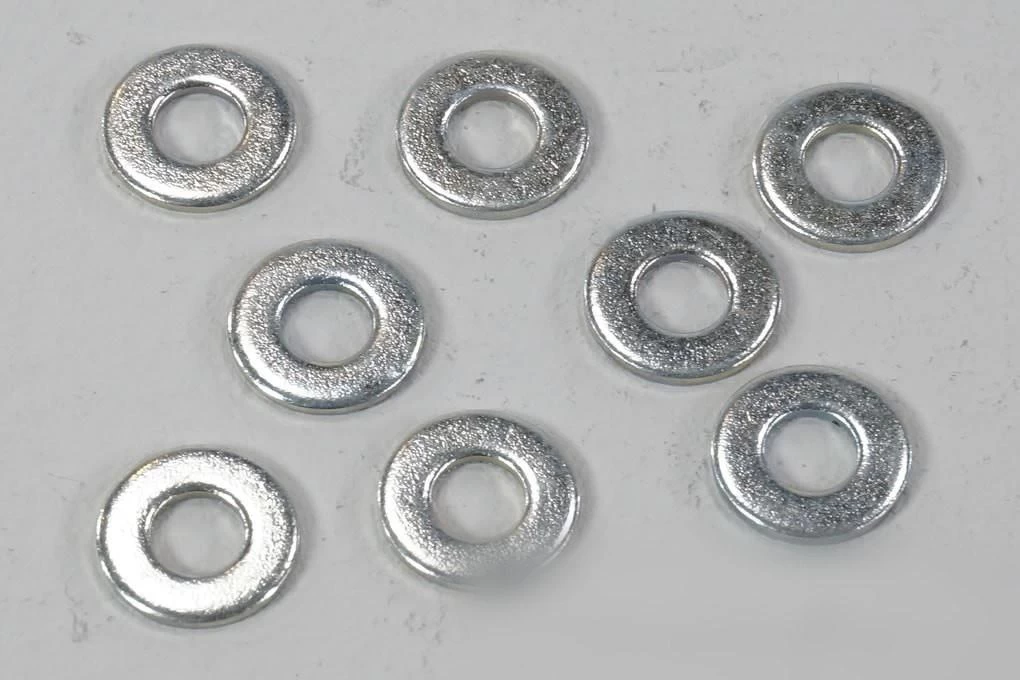 8 pack of Zinc-plated steel 4mm flat washers for your model aircraft projects.