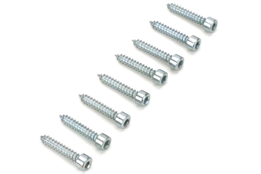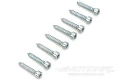 These zinc plated socket head sheet metal screws are fully threaded and have more applications than wood screws. The non-slip socket head makes hard to get at places easy! Perfect for mounting servos, landing gear straps, motor mounts, etc.