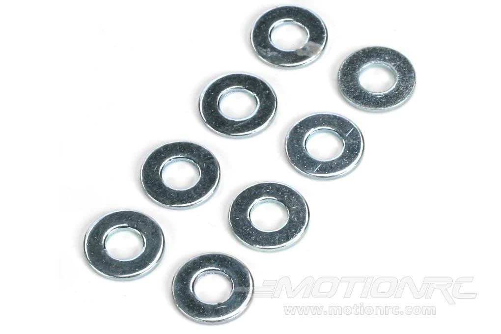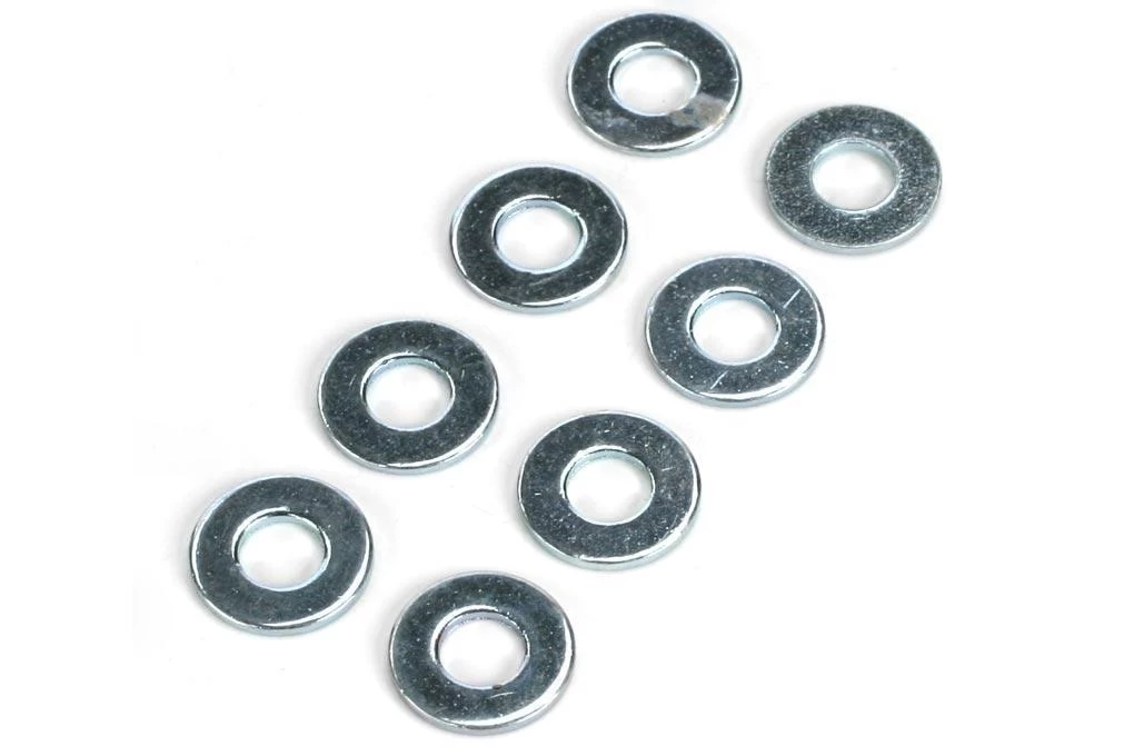 8 pack of Zinc-plated steel #8 flat washers for your hobby model projects.
