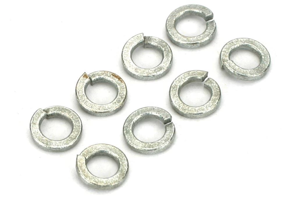 8 pack of Zinc-plated steel #8 split washers for your hobby model projects.