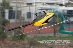 ![]() | Durable and Stable The CNC-finished metal main rotor assembly and linkage layout is configured like larger class helicopters, positioning servos in optimal positions for mechanical advantage. The frame is laser cut from high strength aviation grade carbon fiber that resists twisting, and the durable landing skids’ widened stance improves clearance and stability when operating from firm, clear, and clean surfaces. |
