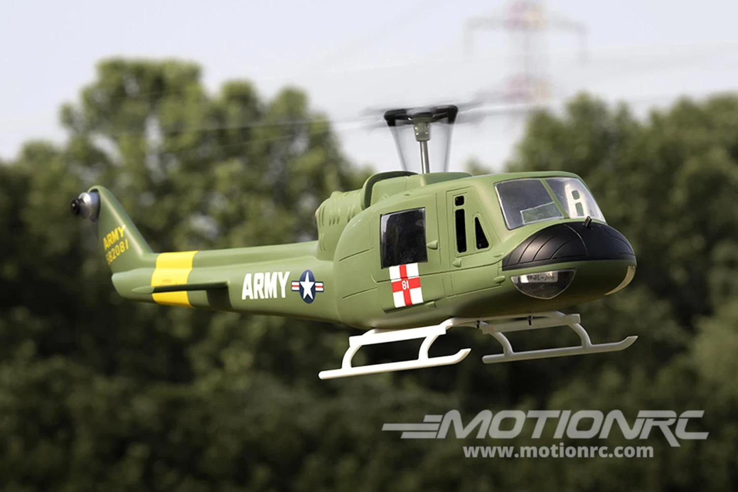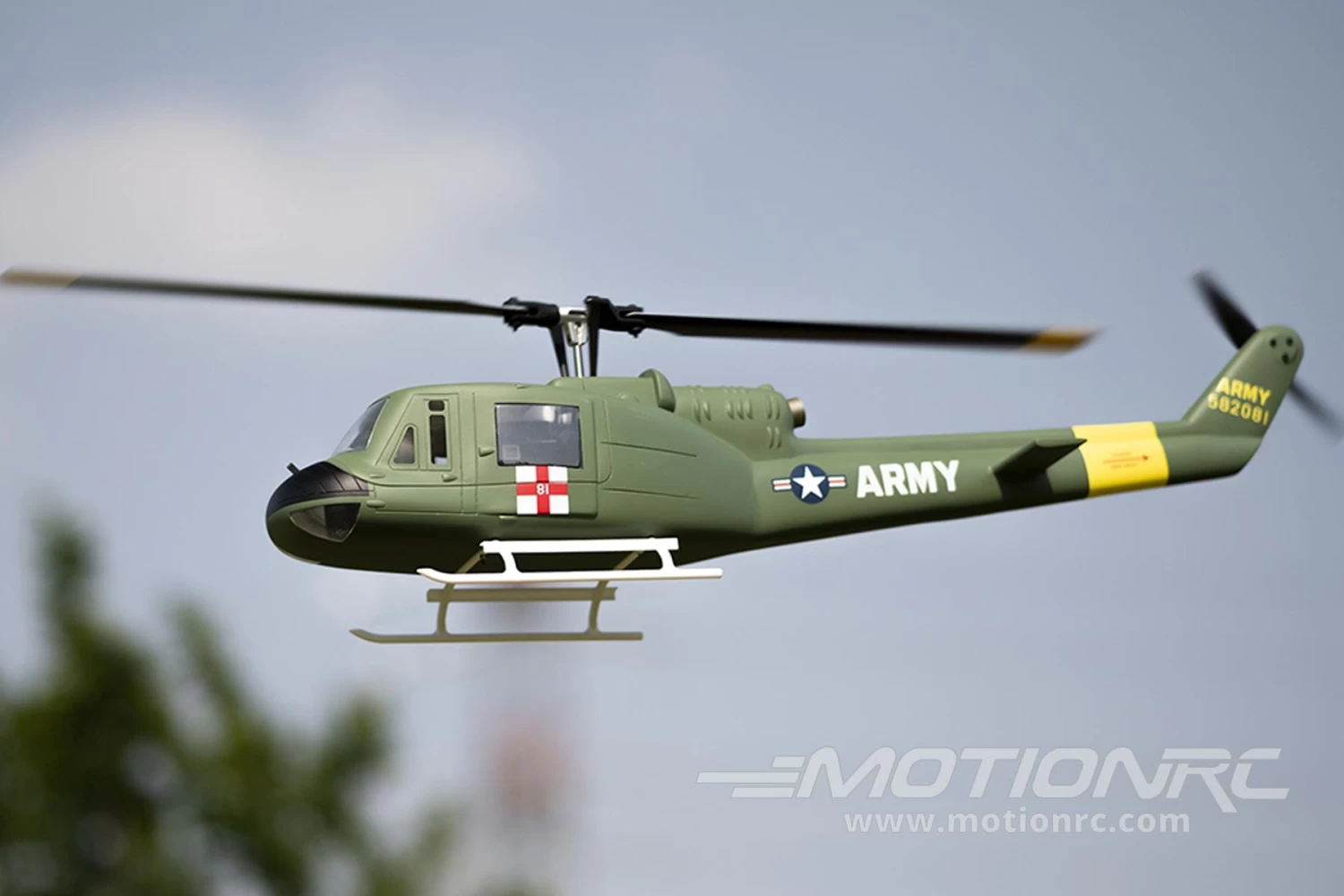 This innovative aircraft combines the sport capabilities of a 450 size helicopter with the rock-solid stability of a GPS-stabilized flight control system. Similar to high-end drones, this system links with GPS satellites in orbit to maintain positional awareness at all times. Sold as an RTF (“Ready To Fly”) package, this Fly Wing UH-1 Huey includes almost everything you need to fly except the four AA transmitter batteries. All radio programming is completed at the factory for you and Motion RC carries a full range of spare parts at an affordable price.