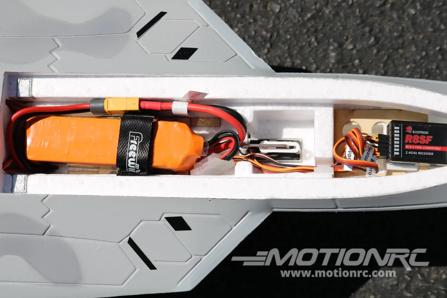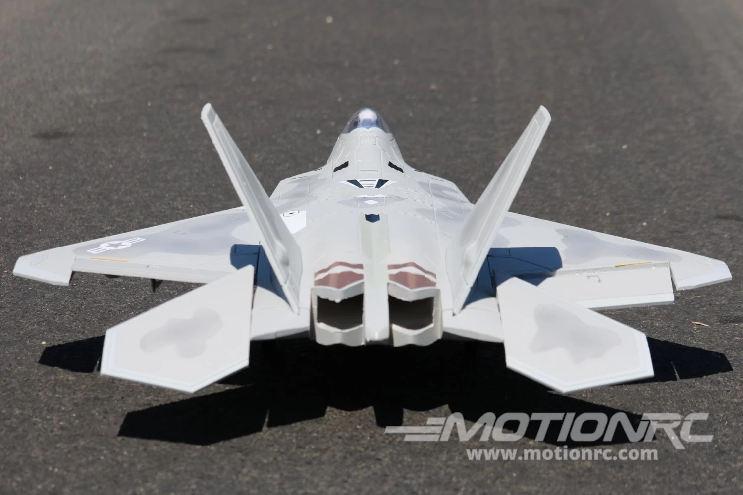 - Fixed, scale landing gear design helps keep the F-22 lightweight and also improves the model’s flying life