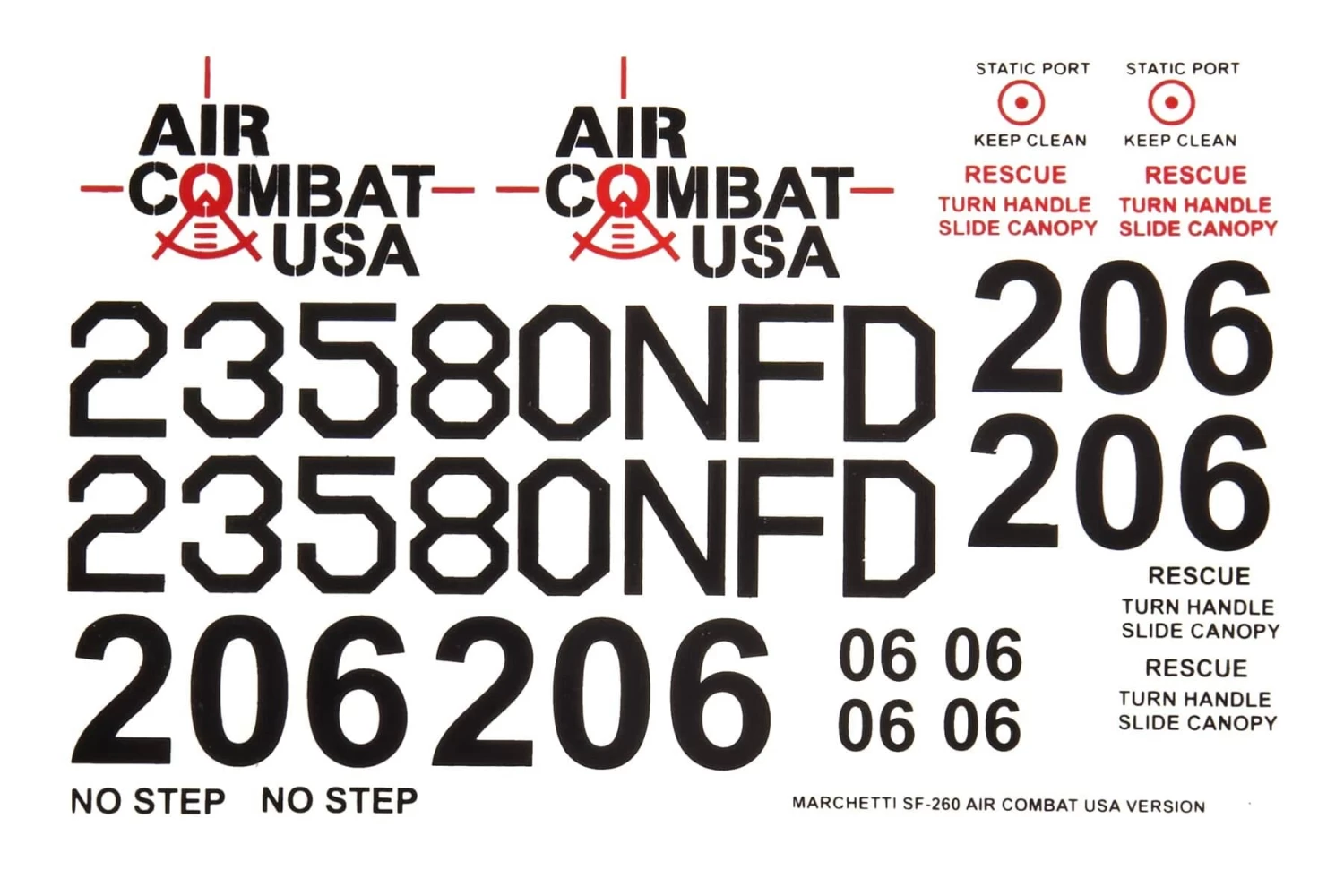 Nexa 1620mm Marchetti SF-260 US Decal Set