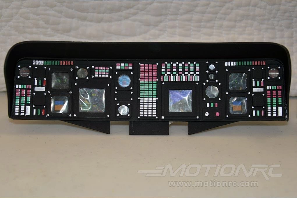 This kit comes with a full scale illuminated detail cockpit with dashboard, joysticks, rudder pedals, aerials, windshield wipers and more. Full rear cabin interiors are included (not installed). Floor and ceiling details can be crafted so once the interiors are installed you have an impressively scaled cockpit/interior.