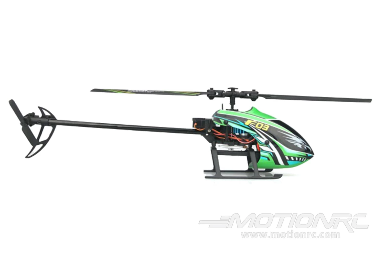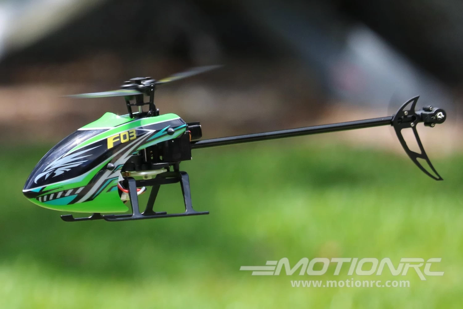 Constructed from a blend of semi-rigid materials, plastic, and carbon fiber, the RotorScale F03 resists damage from hard landings. Its simplified layout is also easy to repair with affordable spare parts from Motion RC.