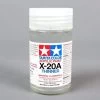 X designated colors have a glossy finish while XF designated colors are flat finish. The paint can be thinned for airbrushing using Tamiya X-20A Acrylic thinner. The paint can be also thinned for airbrushing using Tamiya Lacquer Thinner. Using Tamiya Lacquer Thinner will yield faster drying results and a harder finish.